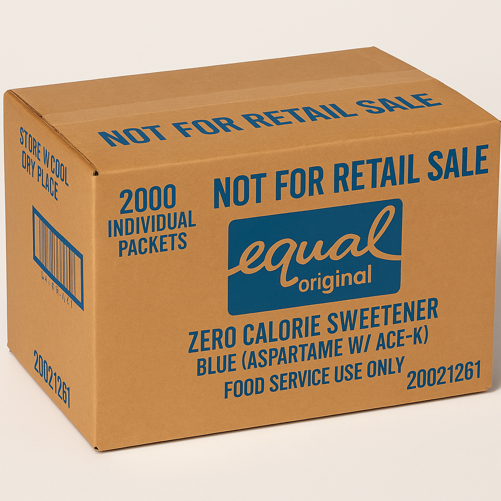 a zero-calorie sweetener made with Aspartame and Ace-K, packaged for foodservice use only. This bulk case includes 2000 individual packets, ideal for restaurants, cafés, hotels, and catering services. Convenient single-serve packets provide consistent sweetness with every use.